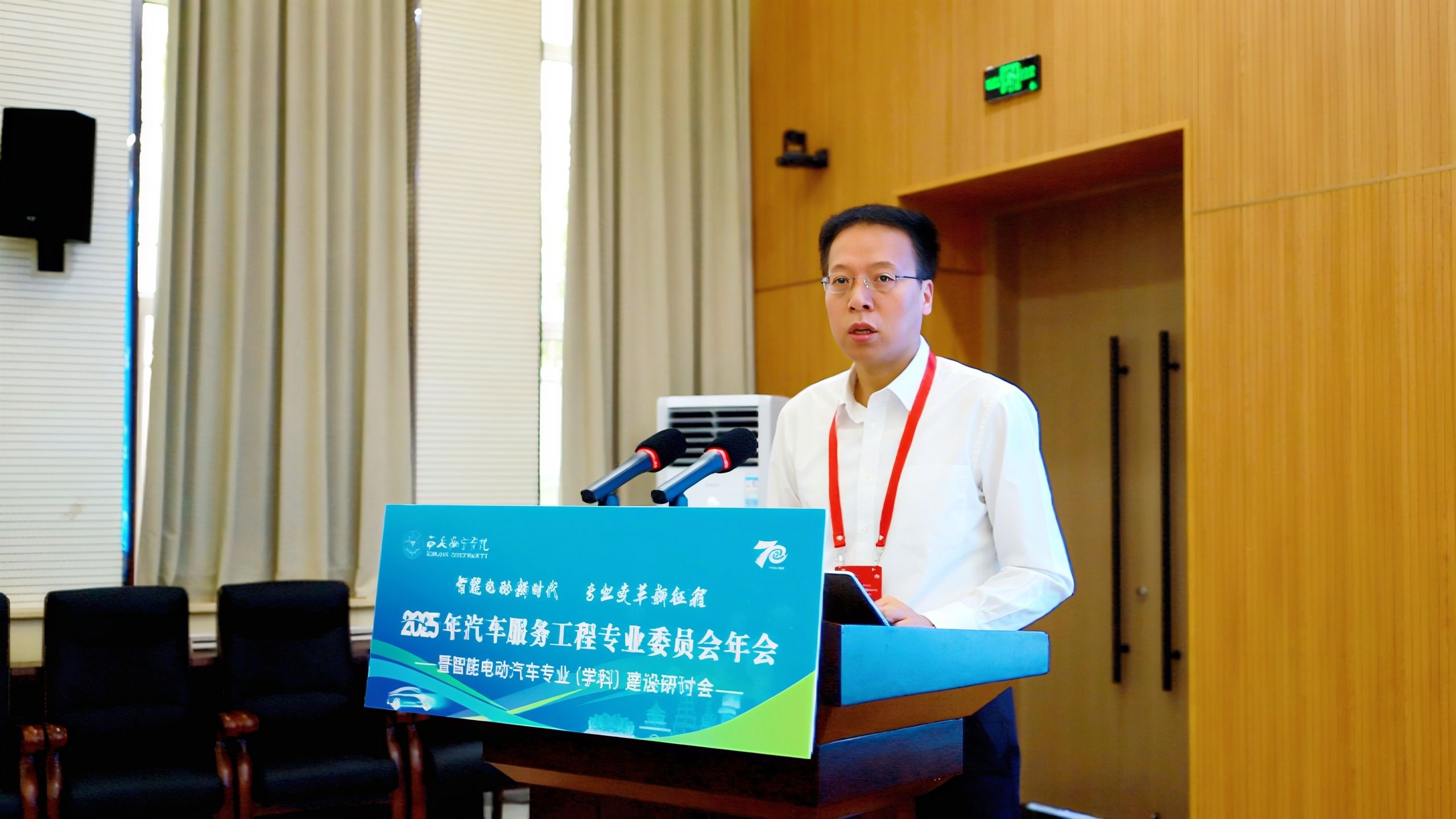 随后,汽车服务工程专业委员会主任委员林逸教授致辞。他回顾了专业委员会成立的初衷与十年发展历程,对参会嘉宾及工作人员表示感谢。林逸教授呼吁全体专家代表坚守初心,积极响应国家战略需求,深入推进学科专业改革,全面提升新时代汽车服务工程及智能电动汽车领域的人才培养质量。