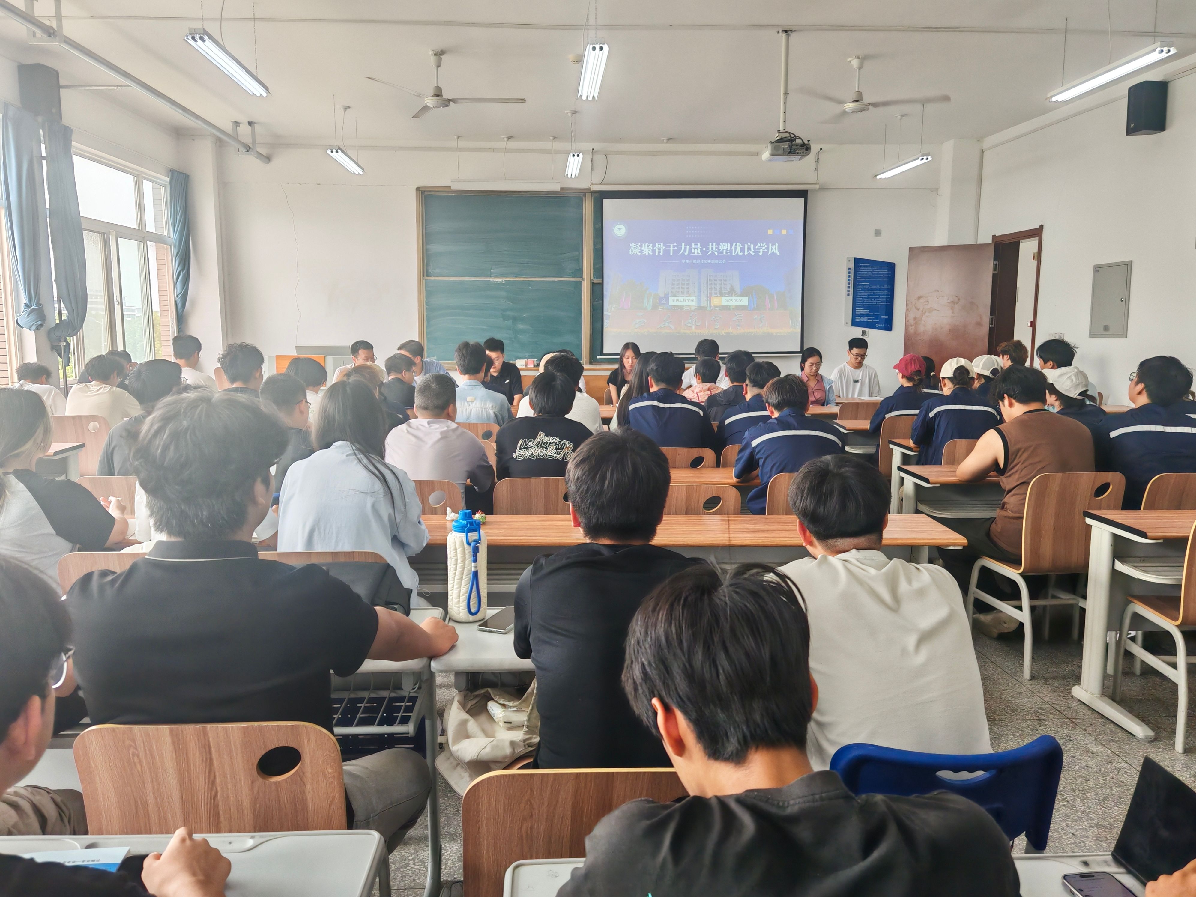 为迎接学校70年华诞,强化学生骨干责任担当,推动优良学风建设走深走实,车辆工程学院于6月6日13时在阎良校区4307召开“凝聚骨干力量・共塑优良学风”迎校庆学生骨干主题座谈会。学院党总支书记周小勇、党总支副书记刘雨辰、学工办副主任李艺,各年级辅导员、学生干部代表、学院安全员参会。