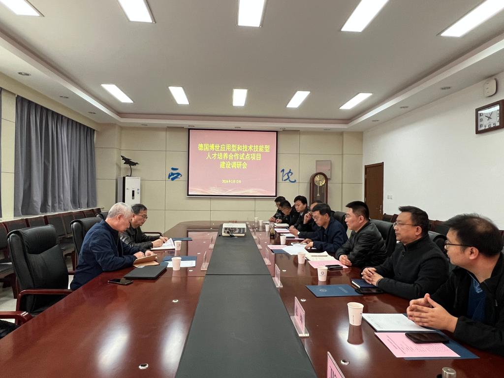 3月13日上午,德国博世应用型技术技能型人才培养合作试点项目建设调研会在阎良校区第一会议室召开,德国博世应用型和技术技能型人才培养合作试点项目组专家张胜伟、付照洪来校调研。副校长宋文学、对外交流与合作处处长王坚、车辆工程学院院长赵炜华、党总支书记周小勇、副院长赵坤一行参与调研会,会议由王坚主持。