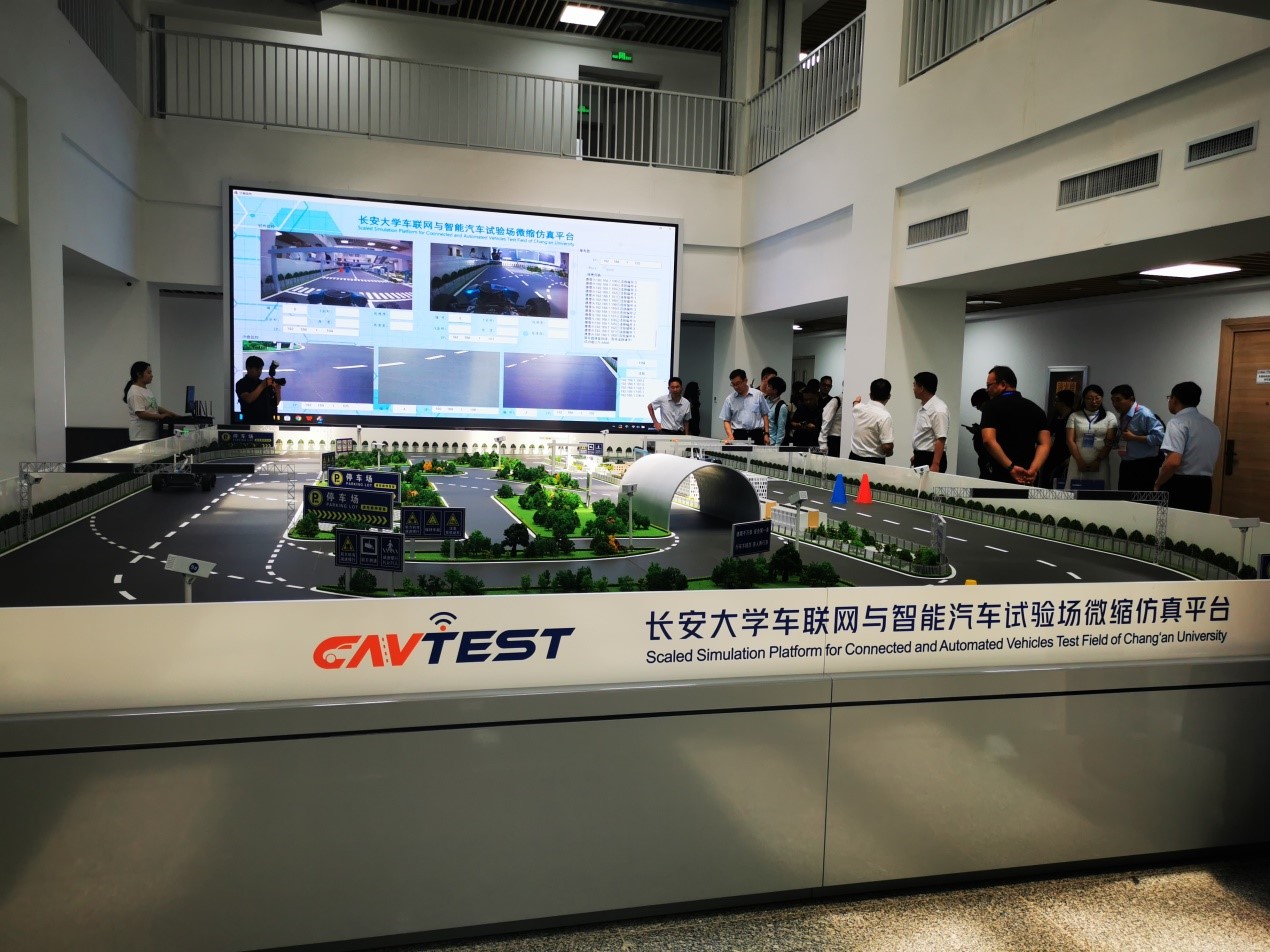 主旨报告结束后,教师驱车前往长安大学渭水校区参观学习长安大学车联网与智能汽车测试技术研究院的实验场地及设备,包含智能网联汽车测试实验室和汽车试验场微缩仿真平台等。