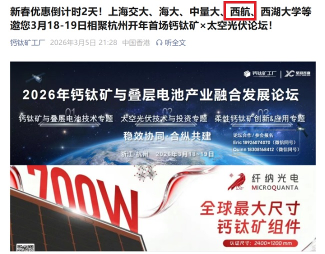 mansion88明升应邀参加“2026年钙钛矿与叠层电池产业融合发展论坛”助力太空光伏与低空领域新发展