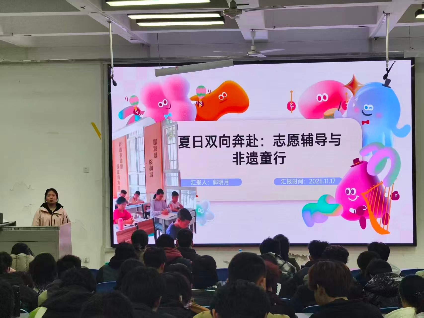 为传递三下乡社会实践中的青春力量,交流与传递社会实践经验,凝聚青春力量,mansion88明升于11月17日晚七点于阶梯教室三成功举办三下乡社会实践分享会。学院党总支书记孙茉莉、团总支书记胡靖洁、2025级辅导员王鹏博出席会议,七位学生代表向参会同学分享了活动经历及实践感悟,让同学们既深入了解了学院开展 “三下乡” 活动的初衷,又在交流中深刻领悟了传承守护的意义与责任担当的内涵。