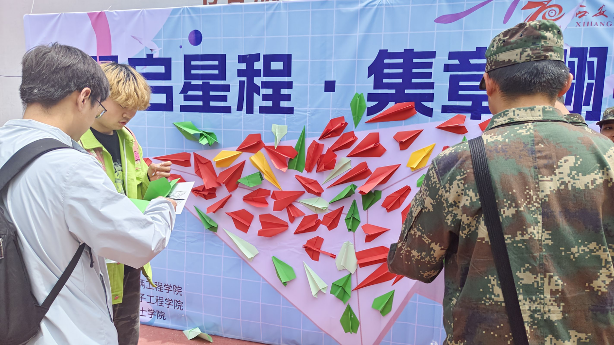 为献礼校庆70周年,赓续校园精神血脉,激发广大师生爱校荣校情怀,推动航空科普教育深入校园,2025年4月29日午12点,由校团委、车辆工程学院、电子工程学院、军士学院联合举办的“翼启星程 •集章翱翔”集章打卡活动于阎良校区奋飞石前盛大启幕。活动以“集章打卡”为创意主线,形成“科技+军事+校情”三位一体的活动构架,以趣味互动与知识科普为核心,将校史校情、学科特色、文化基因融入沉浸式体验,吸引近千名师生参与。