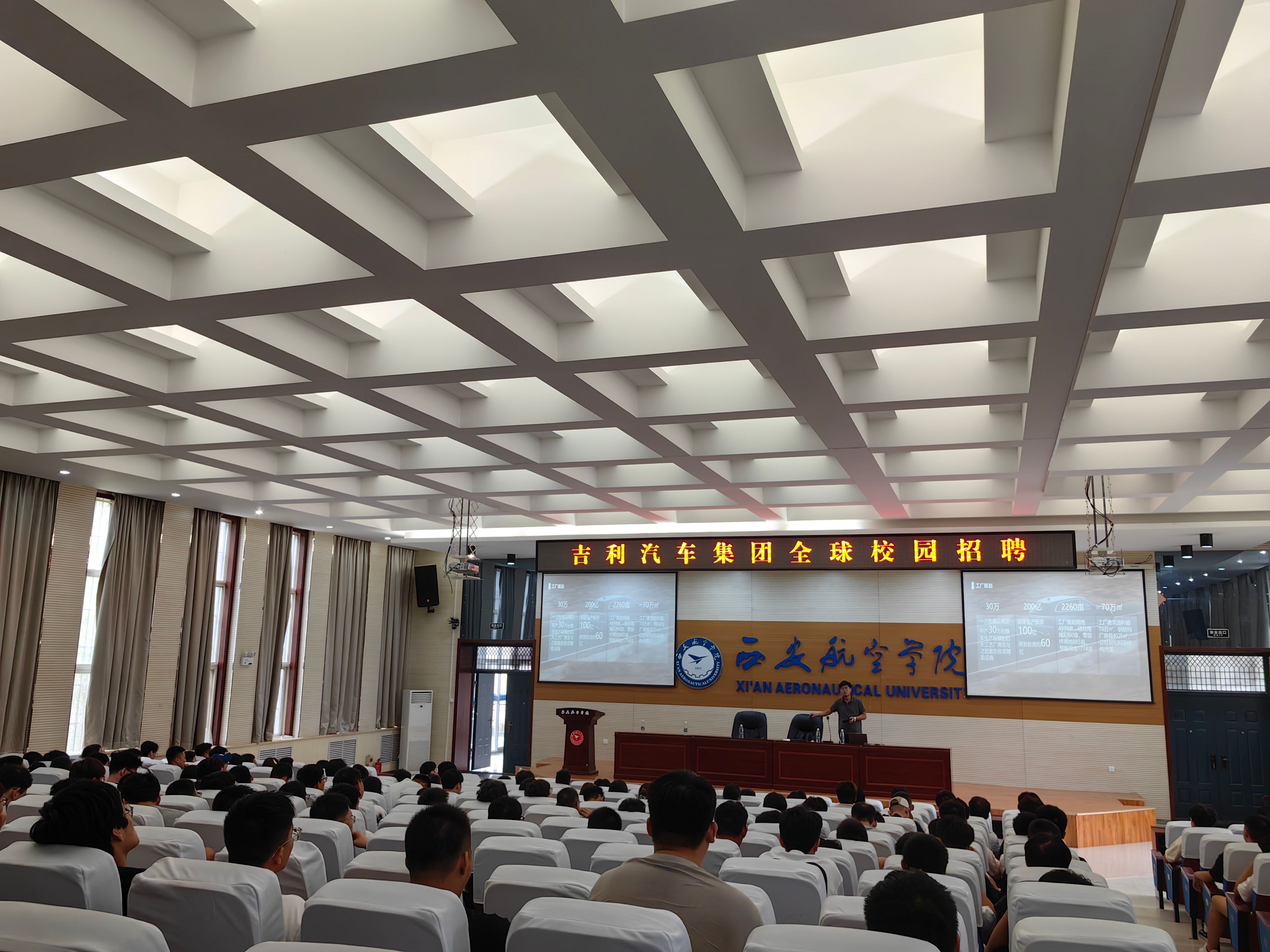 庞主管介绍了公司的情况及此次招聘的专业需求,就行业发展、产业布局、各厂区情况等进行了初步讲解,并对公司主要业务、企业文化、员工职业规划、人才培养、薪资待遇和办公条件等做了详细介绍。王经理分享了自己进入吉利汽车集团的生活与成长,为毕业生们剖析了产业缺什么样的人才、大学生就业为什么难、怎么发展自己、提升核心竞争力,对现场提问一一进行了解答。
