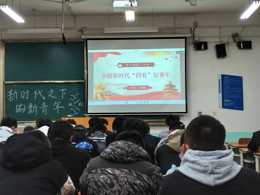活动中,王晓晨同志分别从“做新时代眼中有光的好青年”、“做新时代肩上有责的好青年”、“做新时代手上有招的好青年”及“做新时代脚下有路的好青年”四个方面向大家讲解了党的二十大报告中对当代新青年提出的“立志做有理想、敢担当、能吃苦、肯奋斗的新时代好青年”的重要要求。本次活动在大家的积极参与下顺利完成。