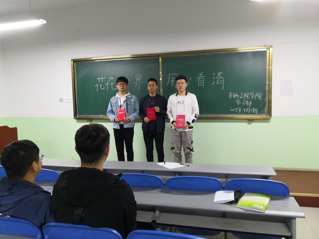 为了能使同学们在人生道路上擦亮双眼,用心看清前路。车辆工程学院于4月29日20:00在北333举办“花花世界,用心看清”主题论辩会。